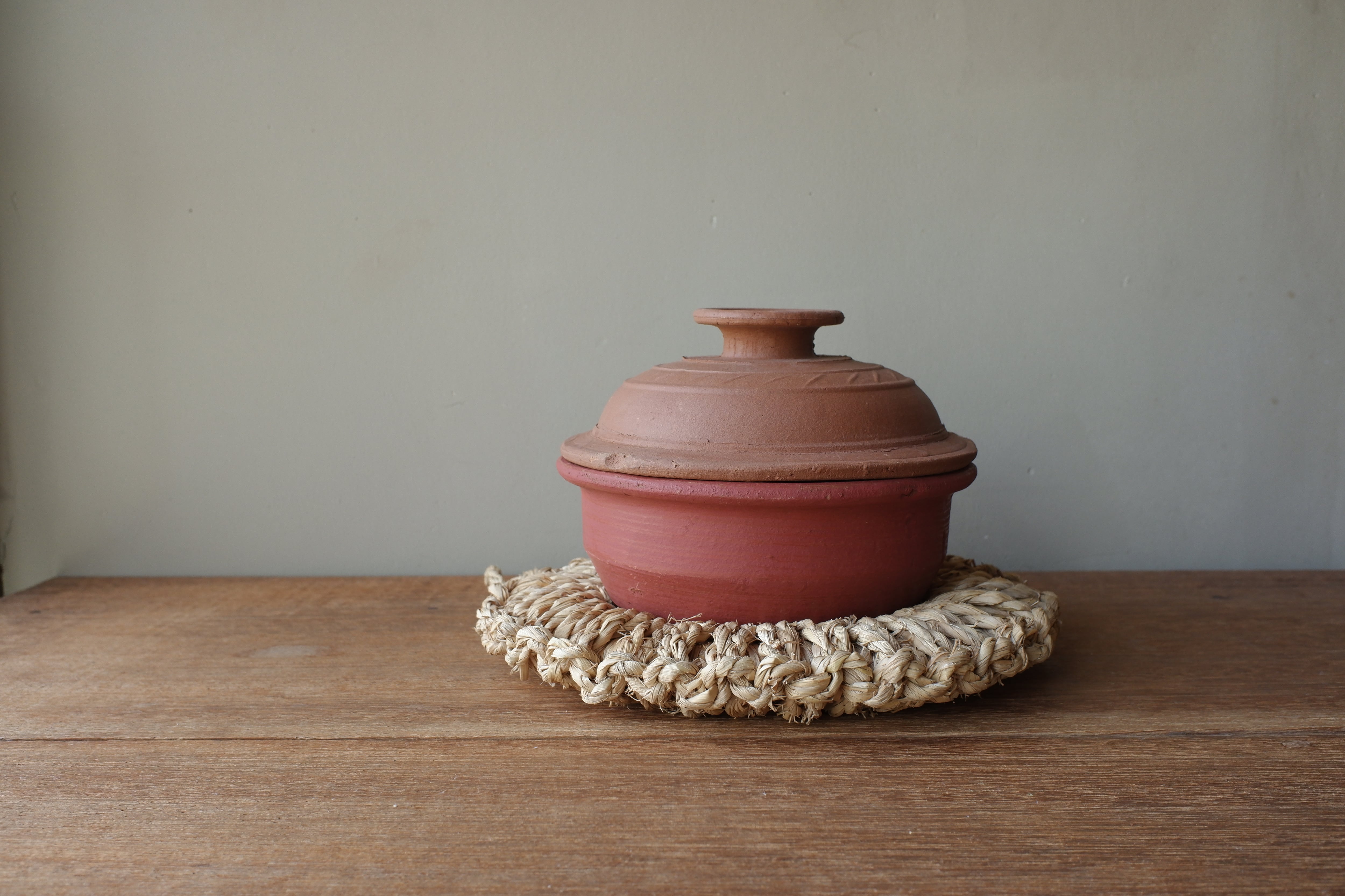 スリランカ伝統の、ワラン 素焼き鍋 小【 直径約17.5cm・蓋付き 】です。