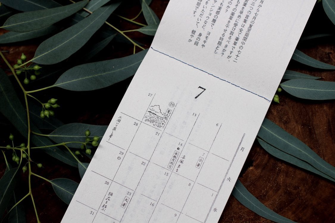裏面には、紀佳さんがお薦めする、それぞれの月の過ごし方やレシピなどのtipsを掲載しました。読み物としても楽しい暦です。