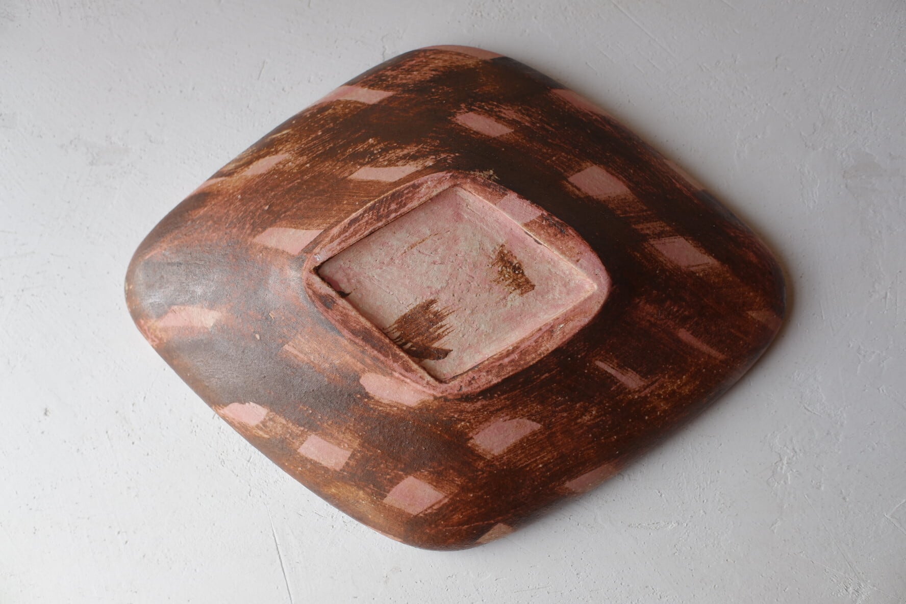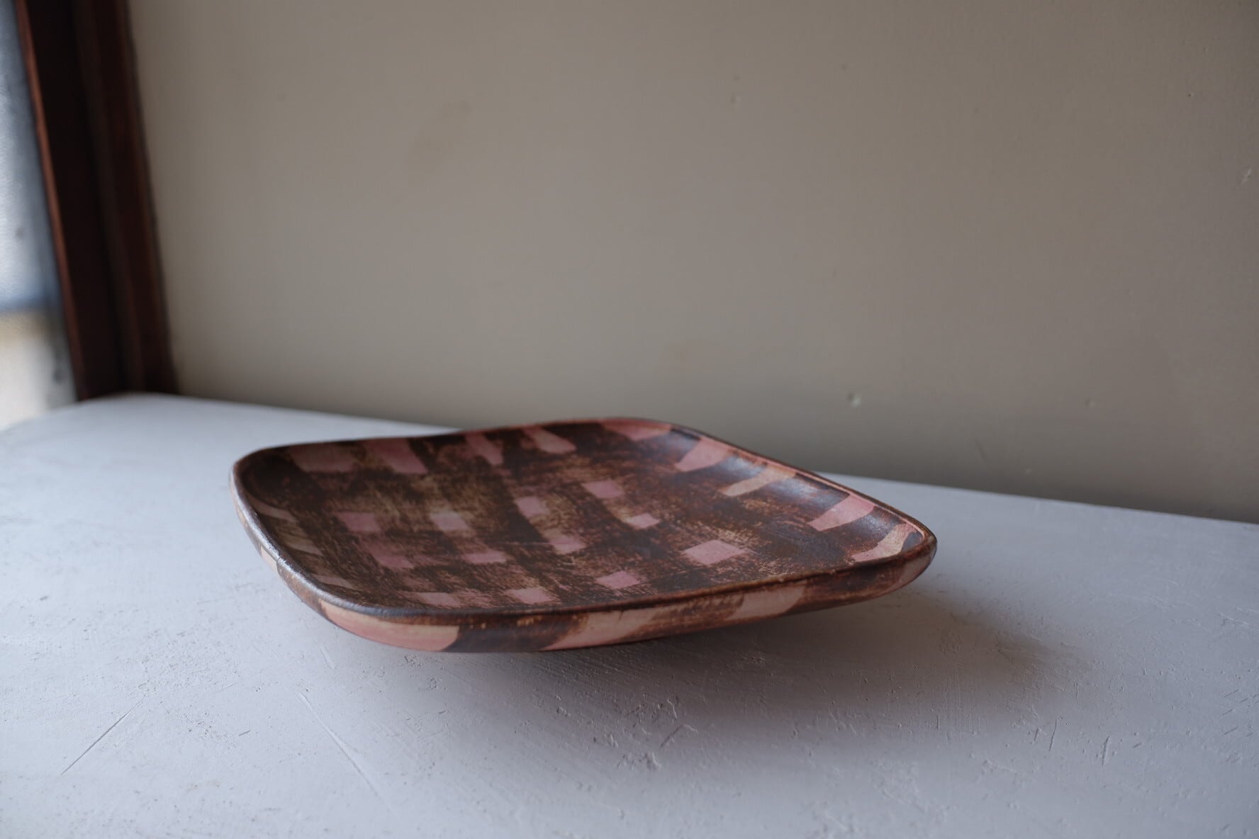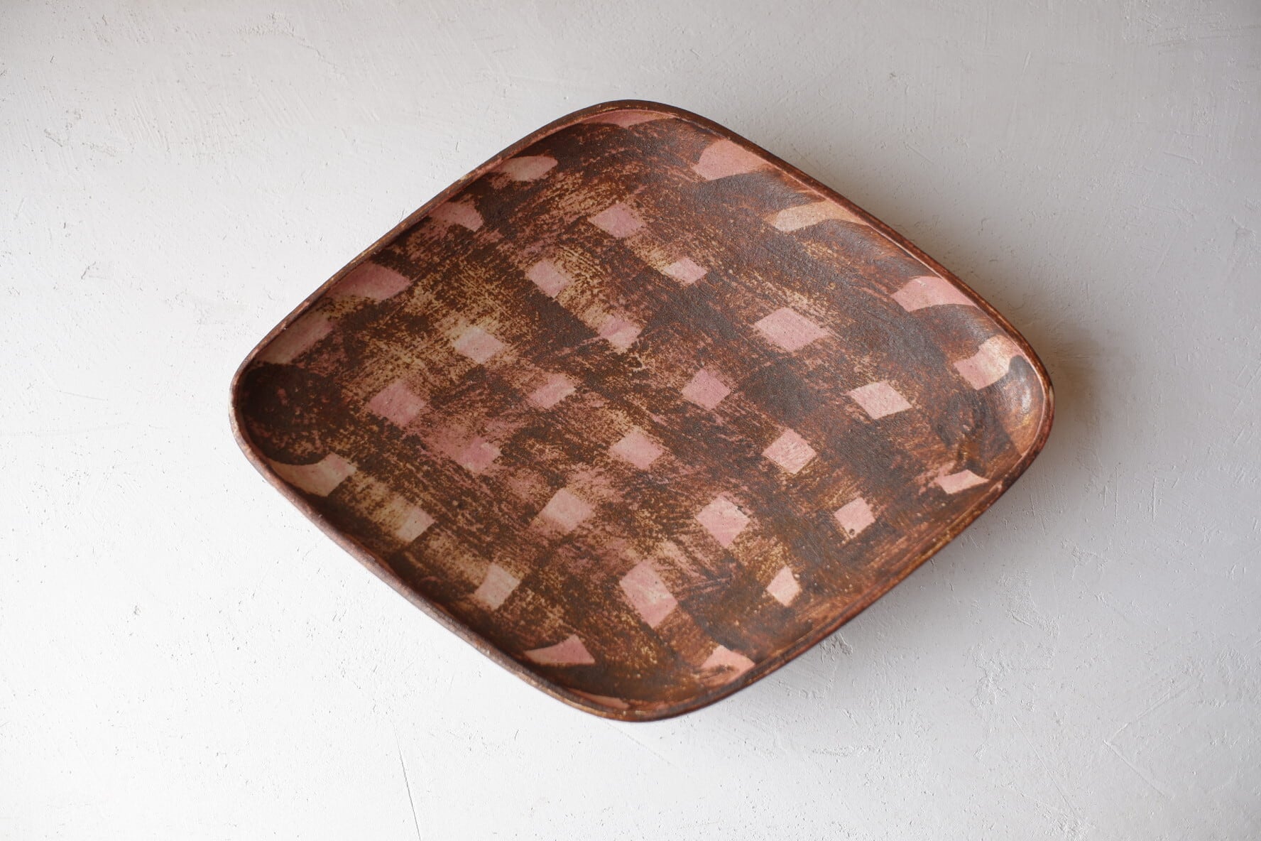 京都で作陶されている、秋田アイさんの ひし形カレー皿【 大(チェック・ピンク)】です。