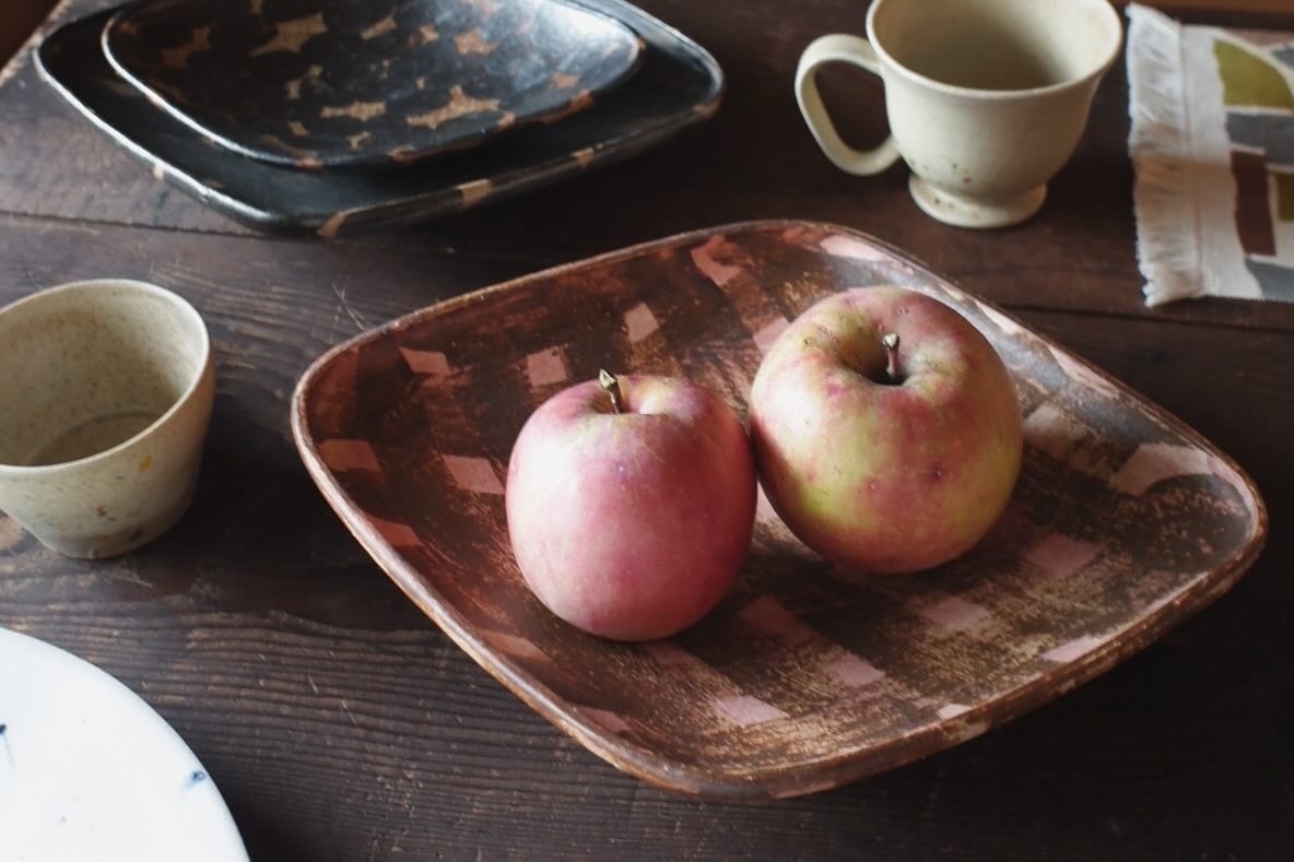京都で作陶されている、秋田アイさんの ひし形カレー皿【 大(チェック・グレー墨黒)】です。