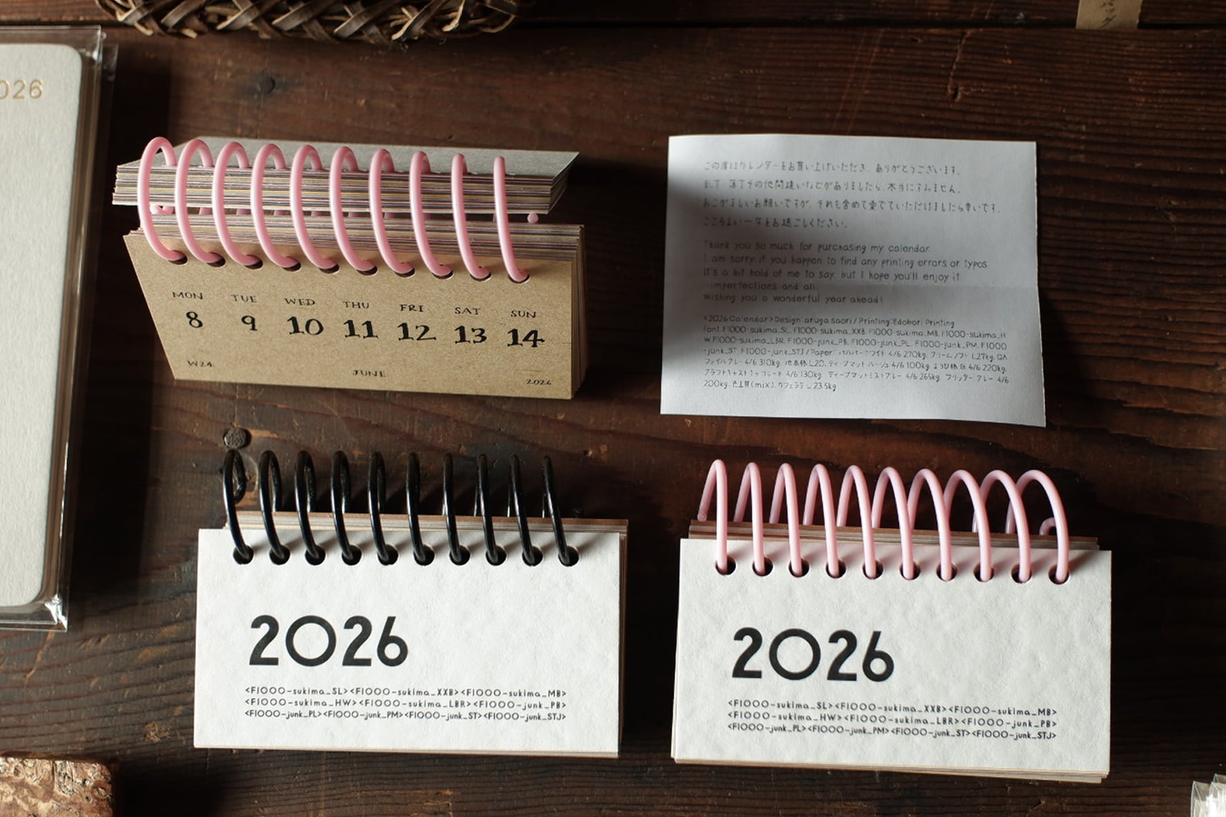 紙の種類、色や厚み、リングの色もその時々で様々とのこと。紙好き、文字好きさんのハートを掴むカレンダーに違いありません♩
