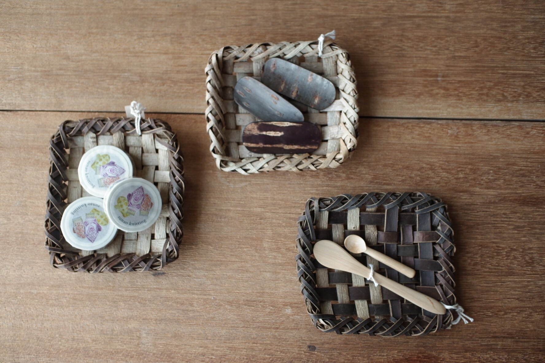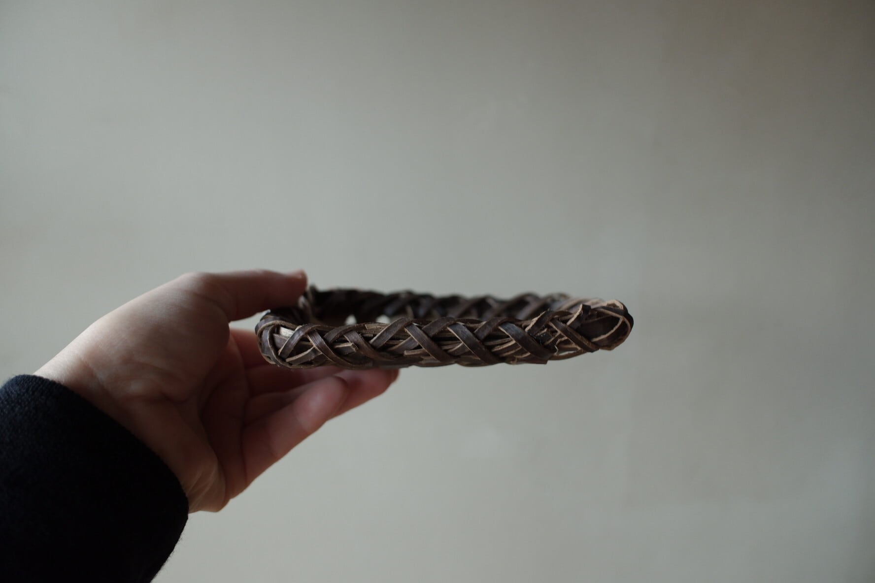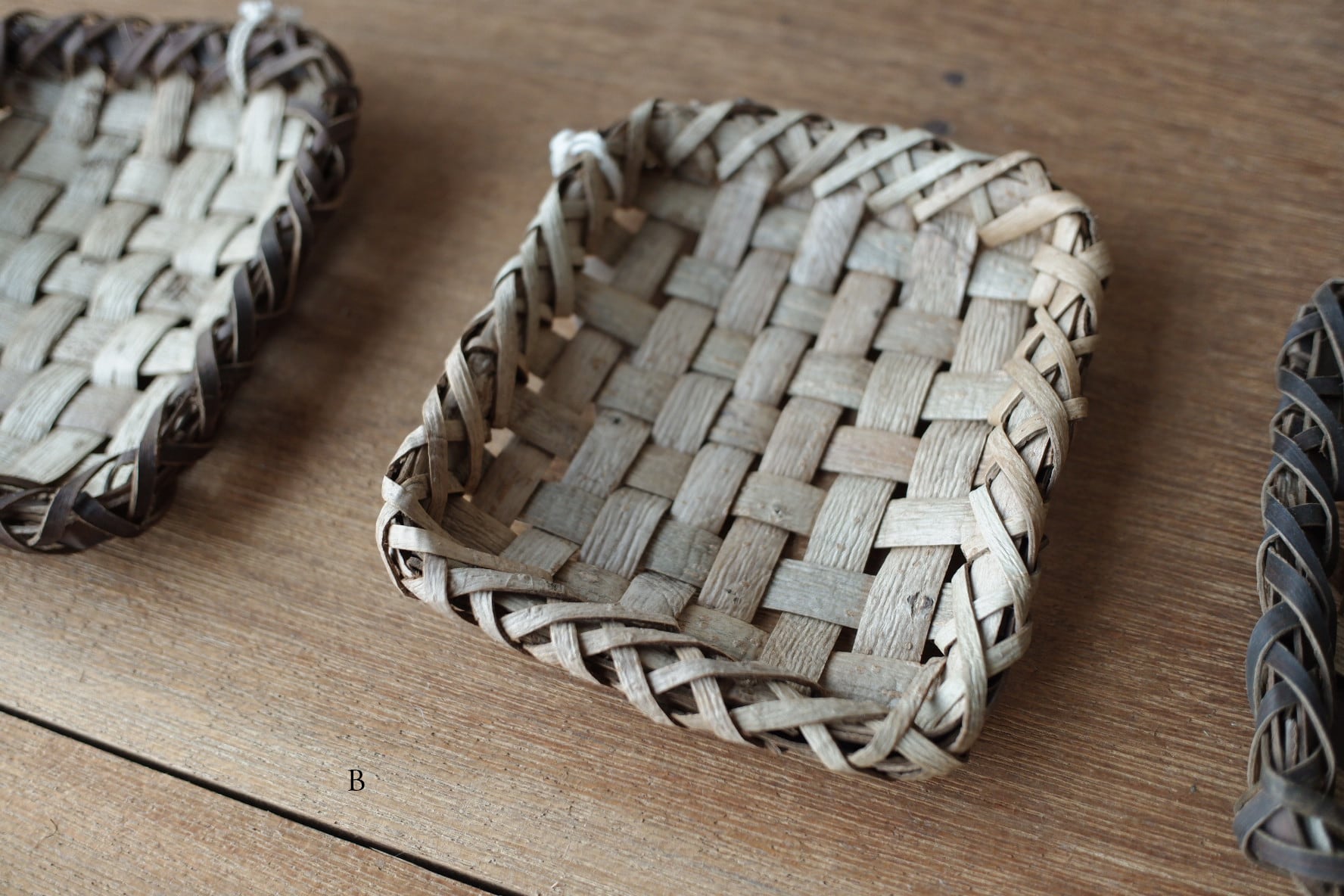 こちらは、沢胡桃樹皮の表皮を市松模様に編んだもの。