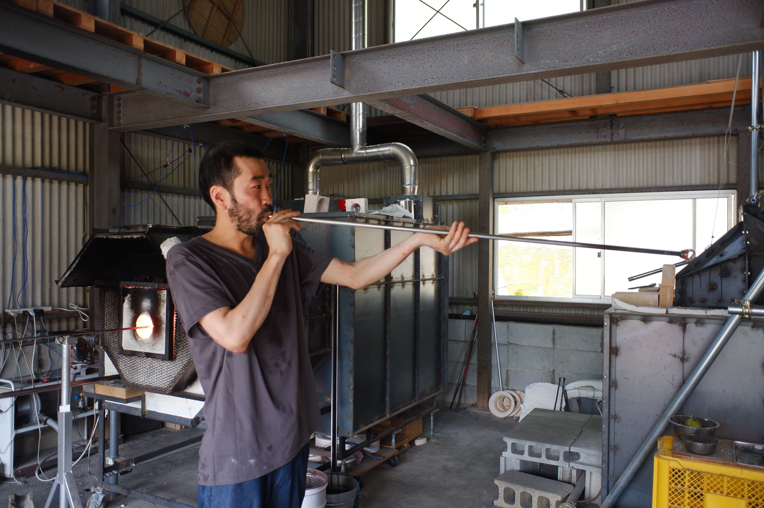 ヤマノネ硝子 加藤岳さん、田中淳子さんは、岡山県美作市 緑豊かな山間にある工房で、