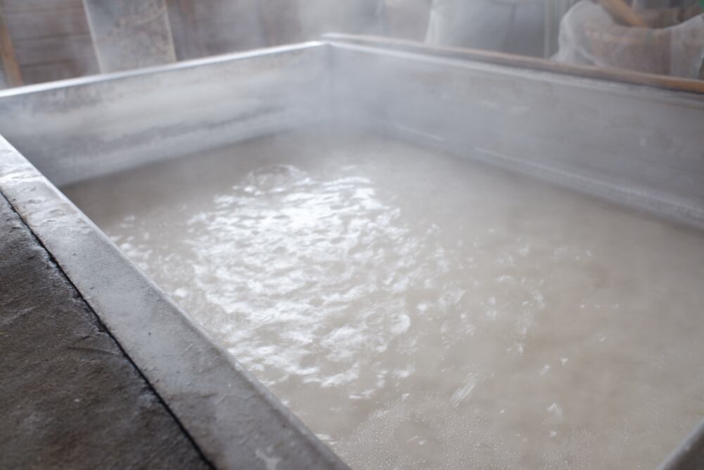 なんと朝の5時から遠州灘の海水を運び、平釜で炊くこと約10時間。