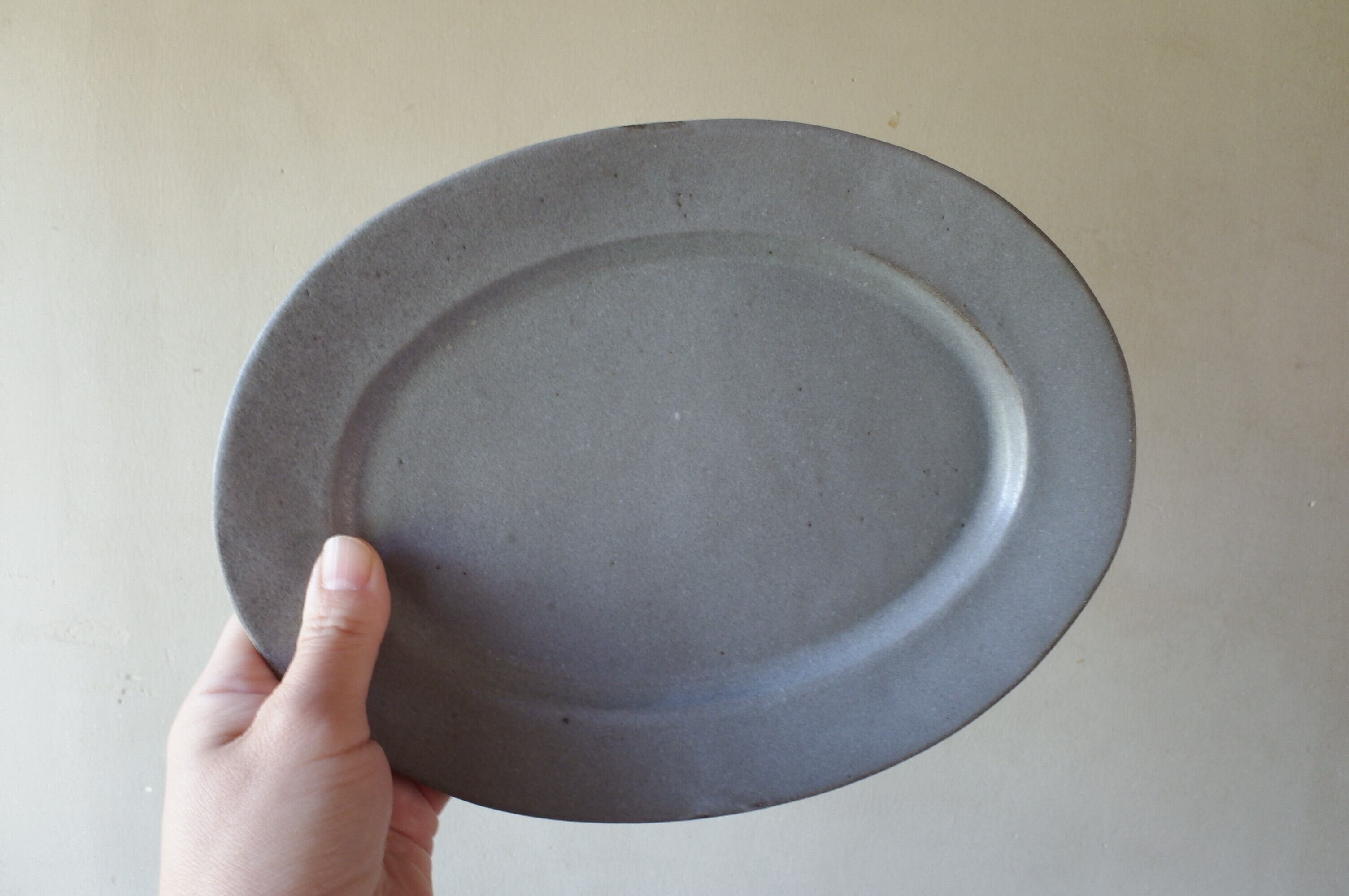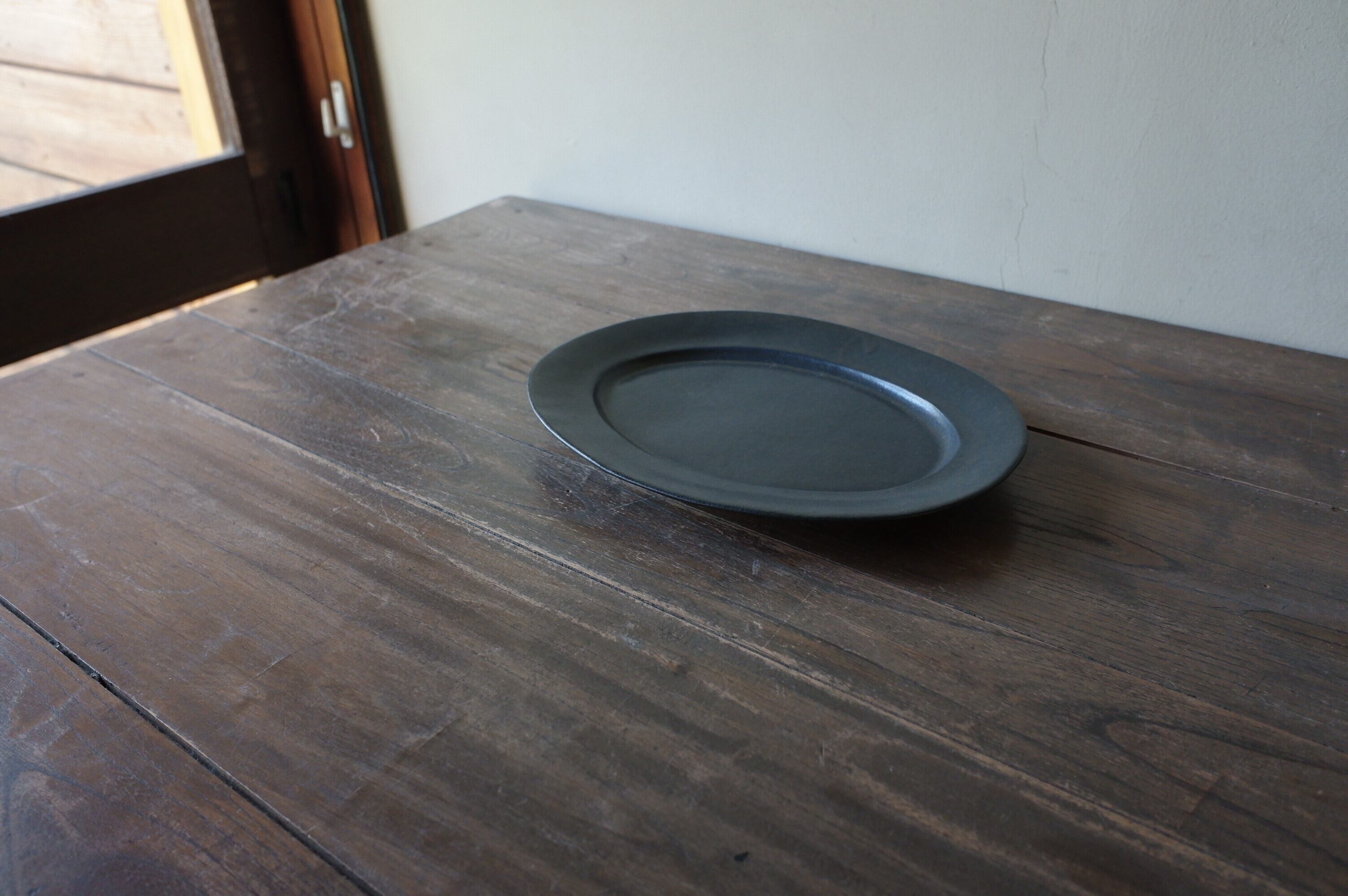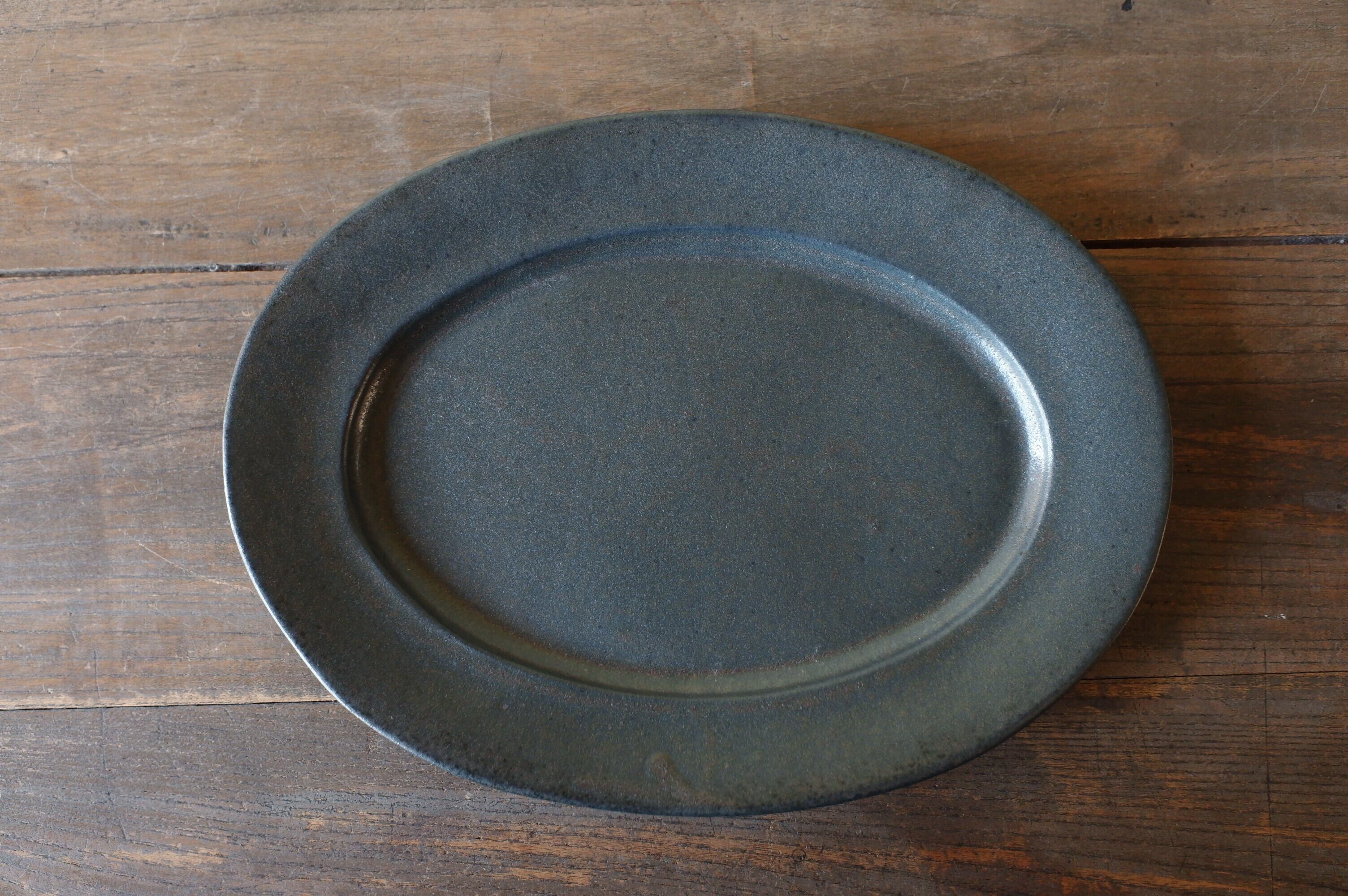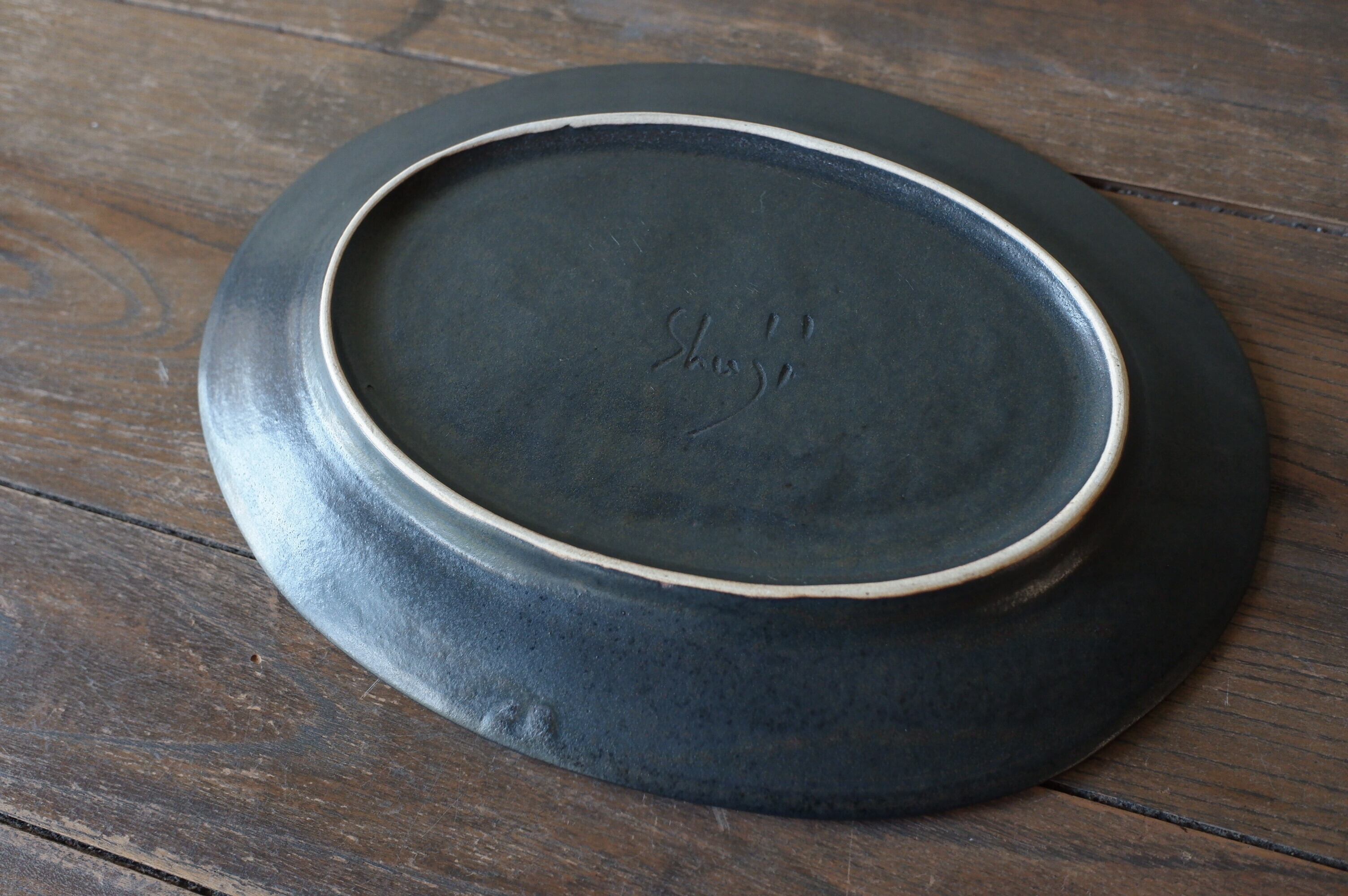 陶芸家 児玉修治さんのオーバルプレート L ( 黒・灰 )です。