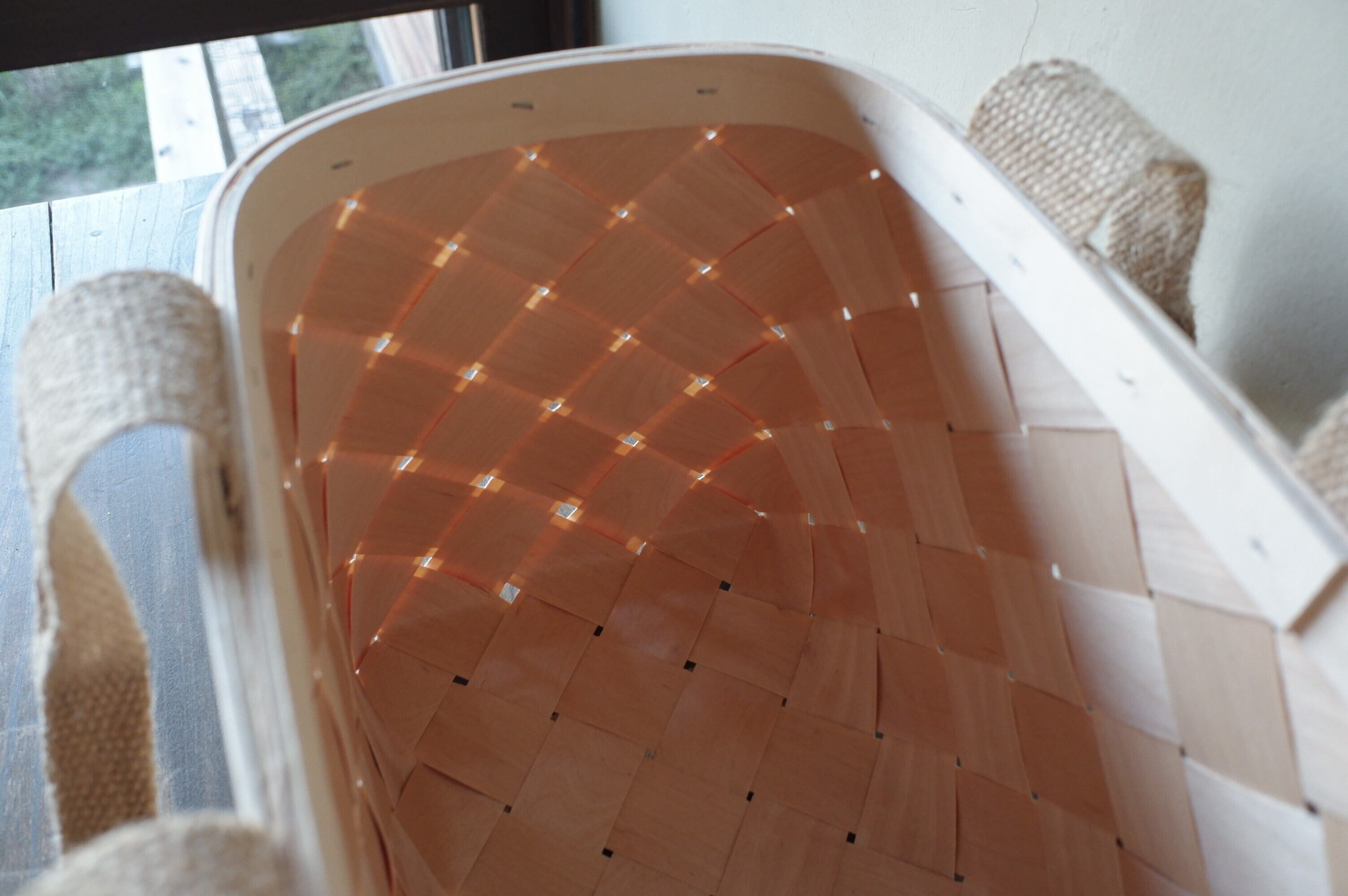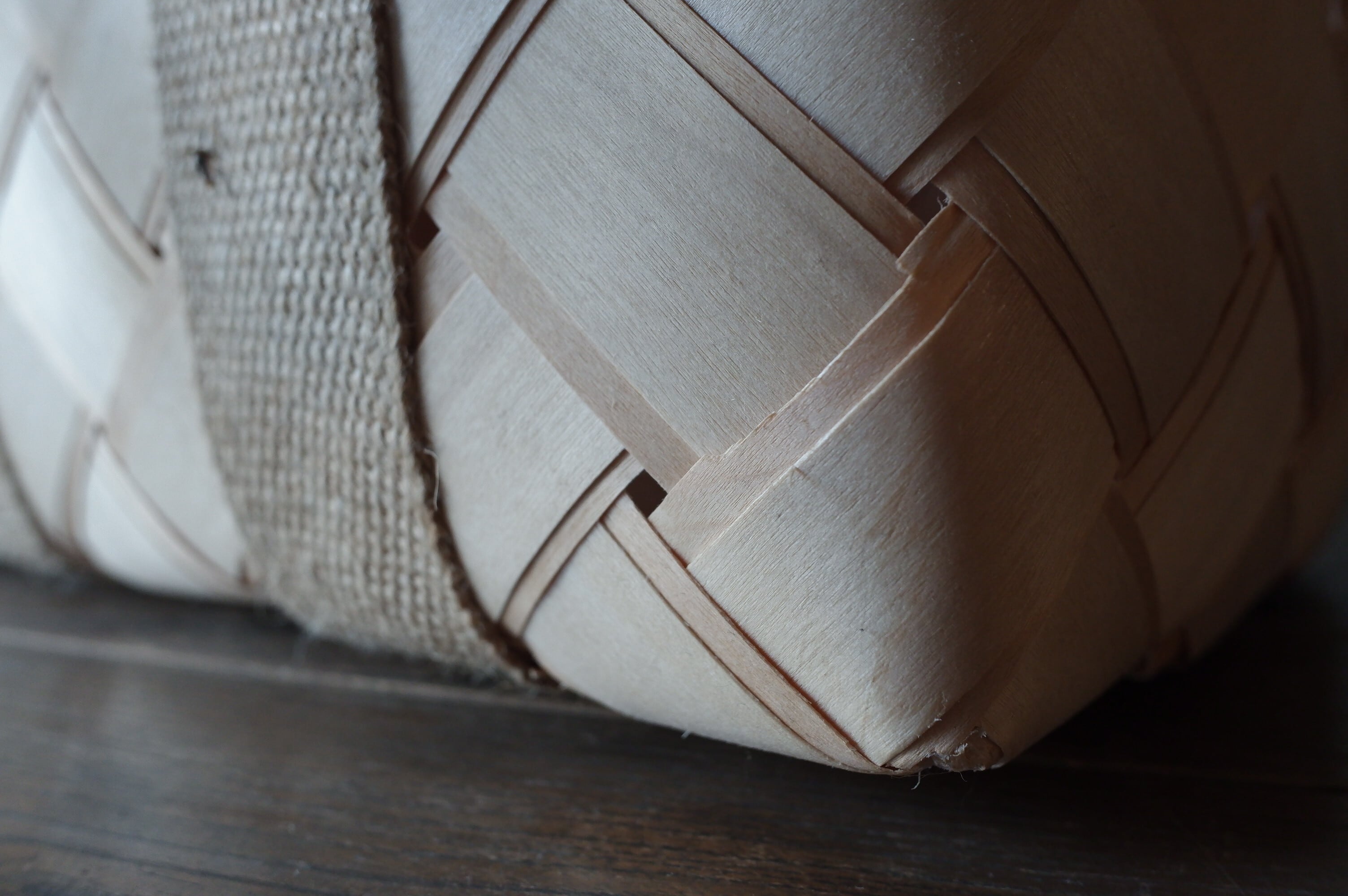 経木は2重になっており、ハンドルの麻テープが底までぐるりと回っており丈夫なつくりです。少し重いものを入れても大丈夫なので、お買い物かごとしてもおすすめです◎