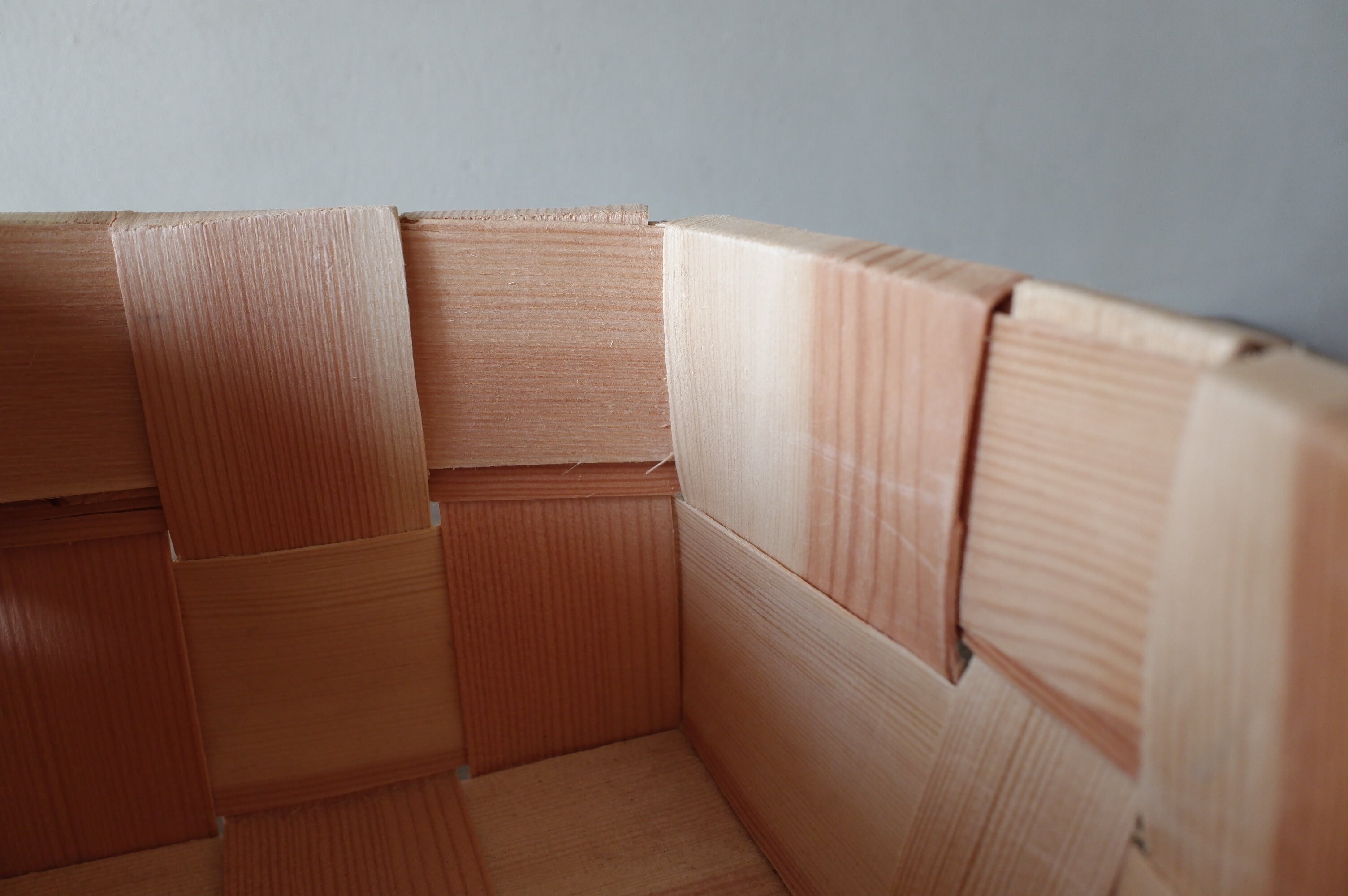 パイン材を薄くスライスした幅広のひごを編み作られています。