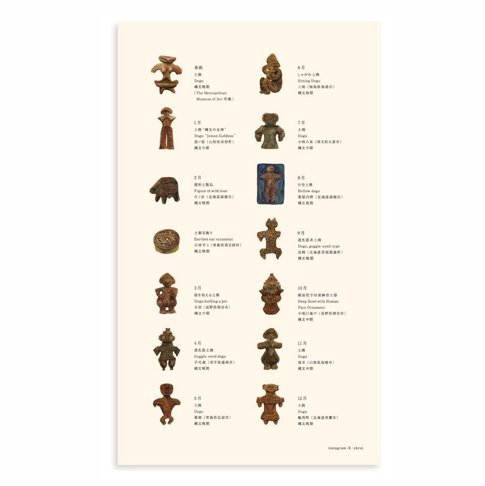2026年版は、メトロポリタン美術館所蔵のスカートの土偶や猫耳の土偶、表情やポーズがなんともいえない土偶、耳飾りや動物型土製品も登場します!