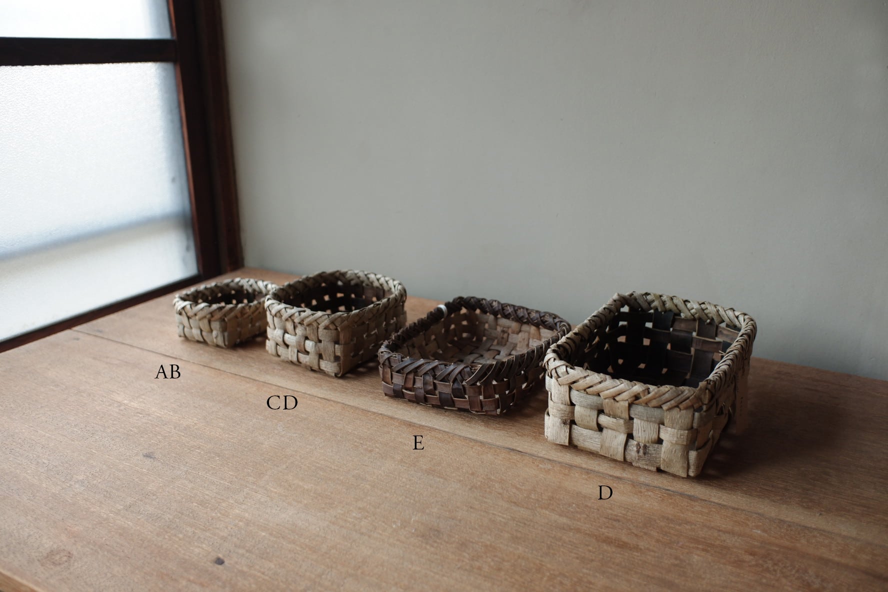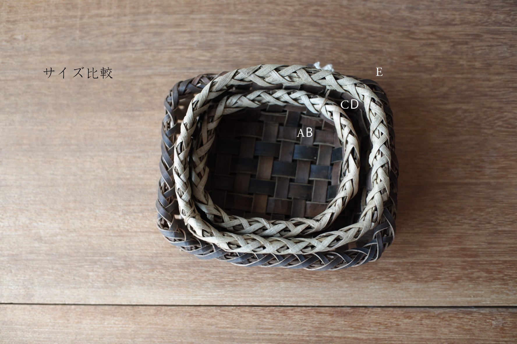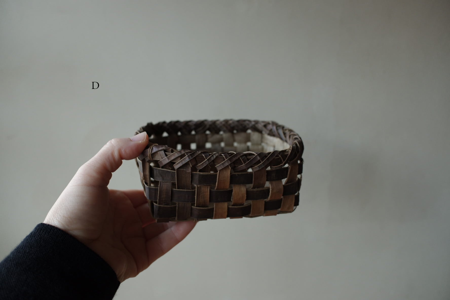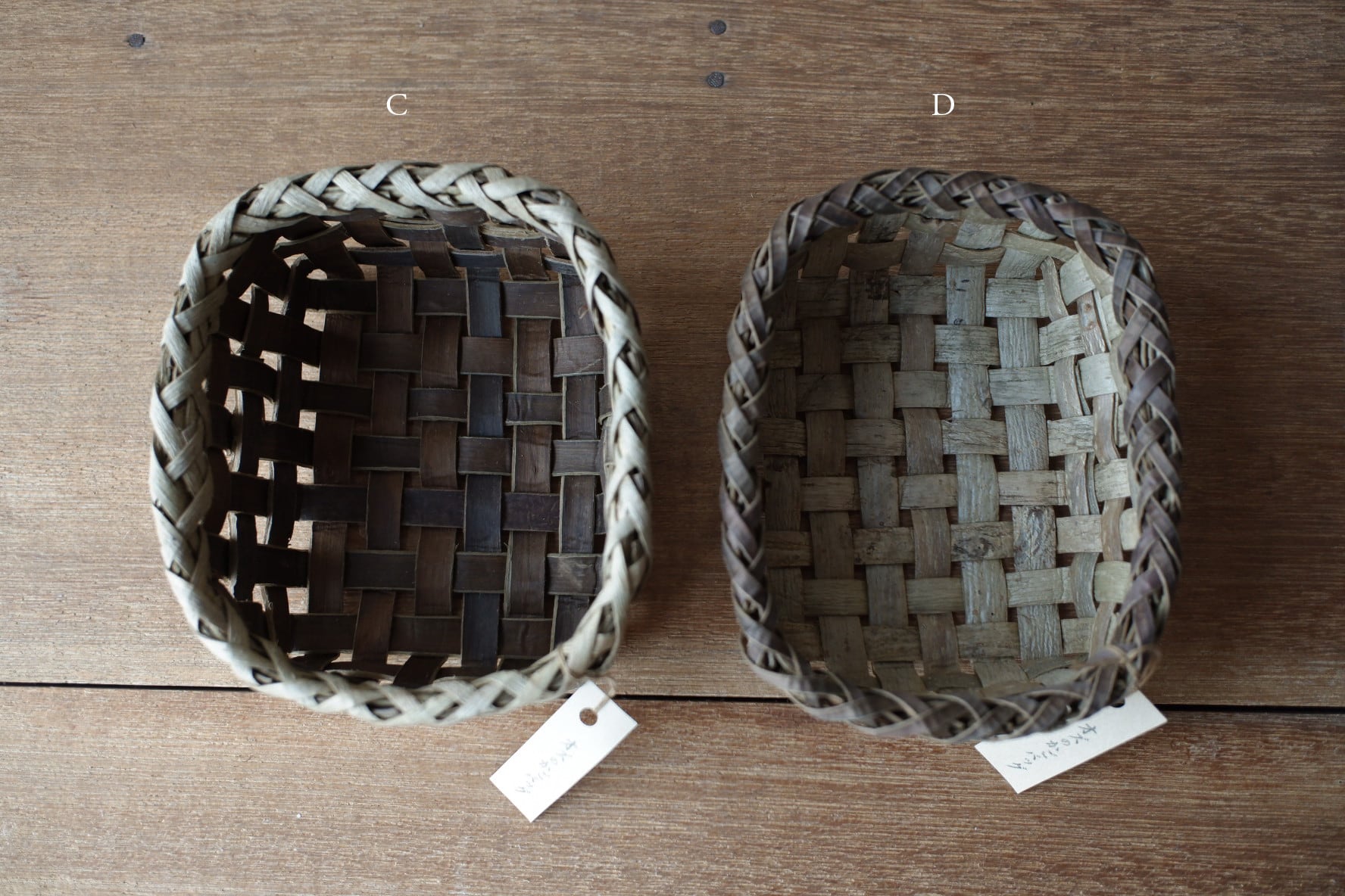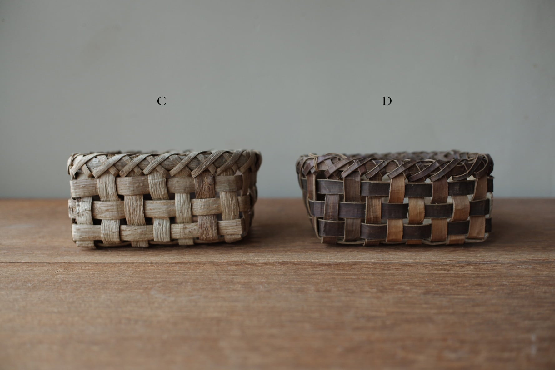 岩手県盛岡市で沢胡桃(さわぐるみ)の樹皮、アケビや山葡萄の蔓を使い、かごを作られているオズのかごバッグ 佐々木敏夫さんの、小物入れかご【 C・D 】です。