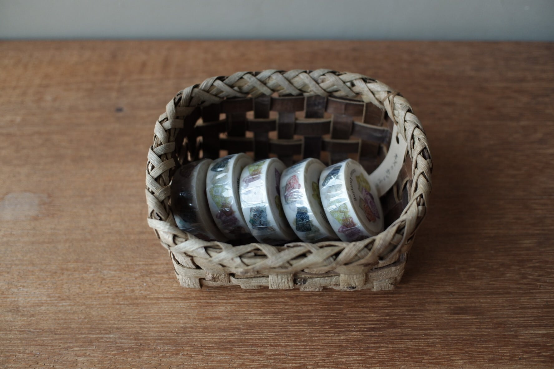 小さなかごは小物の収納にぴったり。