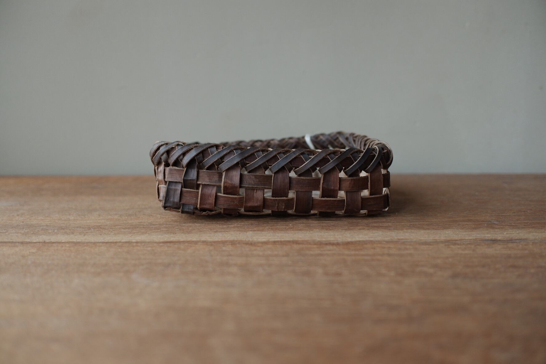 岩手県盛岡市で沢胡桃(さわぐるみ)の樹皮、アケビや山葡萄の蔓を使い、かごを作られているオズのかごバッグ 佐々木敏夫さんの、小物入れかご【 E 】です。